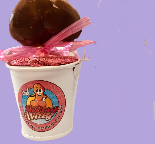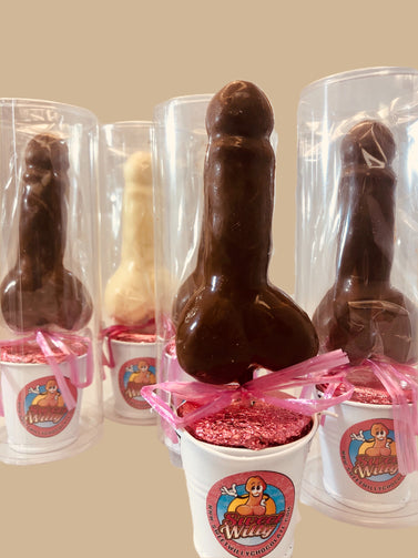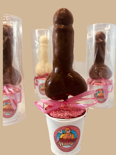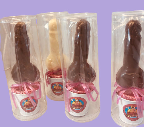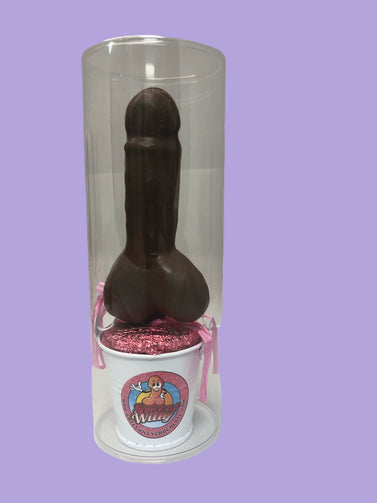 Our chocolate member, displayed on a cute little pot and packaged in a clear tube.